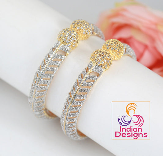Bangle Bracelet in Gold with CZ diamond Crystals | American Diamond 18k Gold Plated Designer Stone studded Kada Bangles Set of 2 | Low price