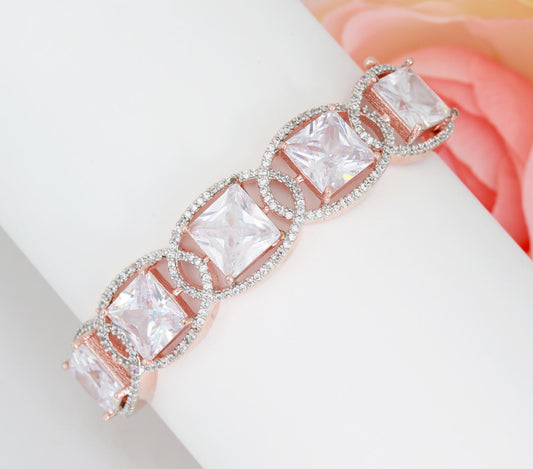 Rose Gold American Diamond Bangles set Pair of 2 | High Rose Gold AD Crystal bracelet & bangles set| Indian Bollywood Style Fashion Bangles