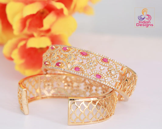 Cz diamond bangles, Ruby stone Gold plated bracelet jewelry | American diamond gold polish bangle bracelet | Indian designs Crystal bangles
