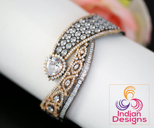 Great Deal! Stylish White stone Bangles Bracelets | Gold plated American diamond bangles set of 2 | Indian CZ diamond stone studded bangles
