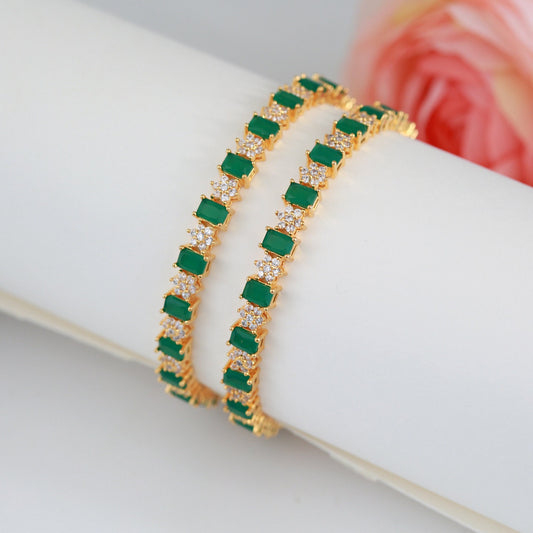 American Diamond Emerald cut emerald stone Bangles | Crystal bangles with CZ diamonds star design | American diamond bangles with price |