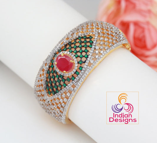 Great deal! Openable bangle bracelet | American diamond bracelet ruby | Oxidized crystal bracelet | Fashion Jewelry CZ bracelet Emerald