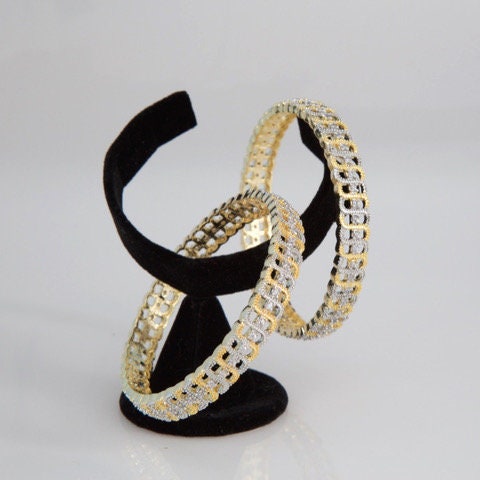 Gold plated Topaz stone Bangles | Floral Design American diamond bracelet and bangles | pair of Bollywood style Bangles from Indian Designs
