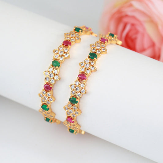 Emerald and Ruby stone American Diamond Bangles | Gold plated CZ Floral bangles | Multi color crystal bangles | designer bangles for ladies