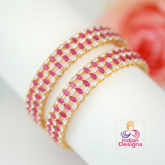 22k Gold plated American diamond marquise cut ruby stone bangles | CZ AD Bangle bracelet From Indian Designs | Party wear designer bangles