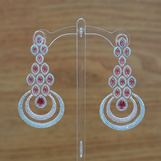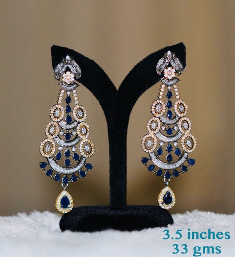 American diamond chandbali earrings Latest Design | AD stone ganga jamuna Long Earrings | Silver and rose Gold Polish Color CZ Stone Earring