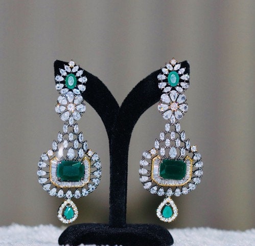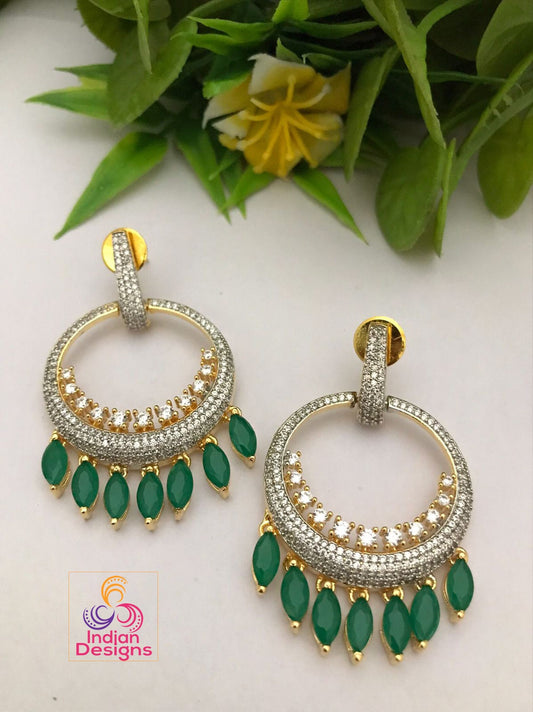CZ Bollywood Fashion Diamond Party Wear Dangling drop Earrings|Women's Fashion Trending Earrings|South Indian Unique Dangle Earrings