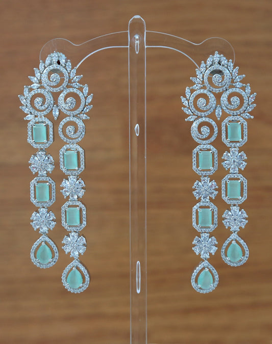 Rose gold American diamond earrings | Mint green earrings dangle Indian Bollywood style | Marquise diamond 3 strand earrings | IndianDesigns