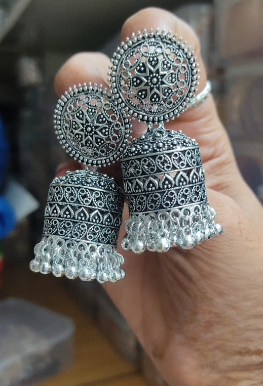 Oxidized German Silver Jhumka Earrings | Party wear Jhumka Jhumki Earrings | Silver Look alike Boho earrings | Indian Bollywood Oxidized dangler Earrings