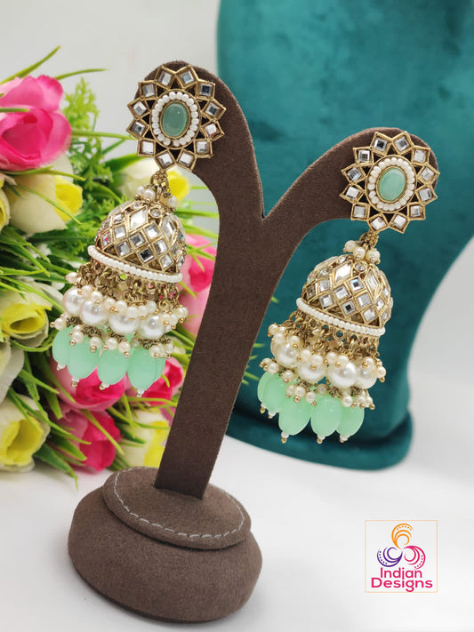 Designer Bollywood party wear Long Kundan Jhumka With Color beads and Pearl drops