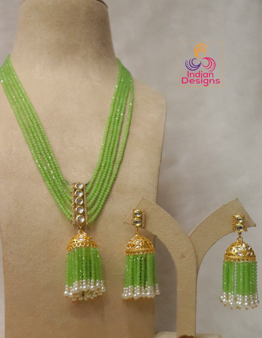 Pink Beads Long Jhumka Necklace |Multi stranded Rani Haar Indian Bollywood Necklace and jhumka Earrings |Wedding party Jewelry |gift for her