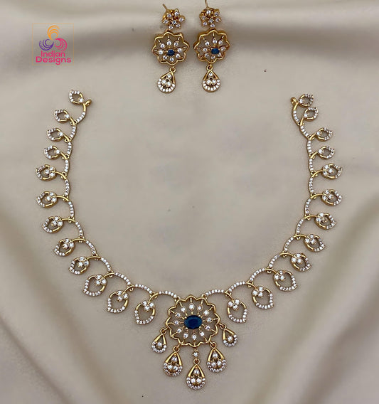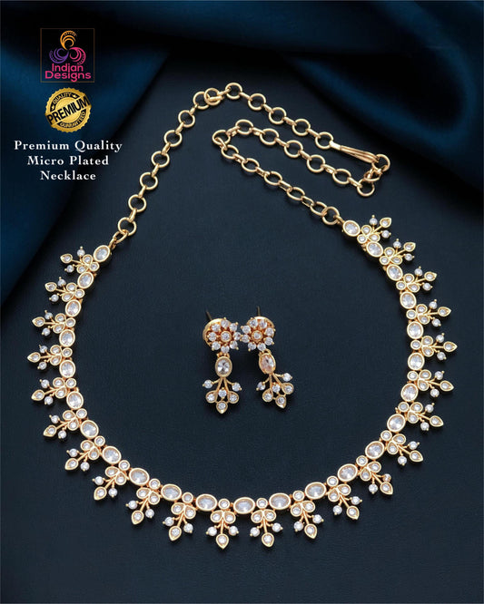 Luxury AD Necklace Set with Earrings | CZ Choker Necklace | Bridal Wedding Jewelry | Gold Finish American Diamond Necklace| Gift for Her