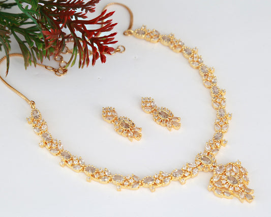 American Diamond Crystal necklace Simple choker Earring Set |CZ necklace and earring set |Leaf Design Golden Daily wear jewelry|Gift for her