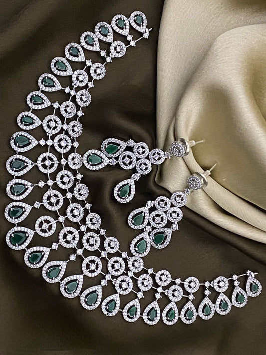 Gold Plated American Diamond Emerald crystal Necklace Earrings, South Indian style Jewelry set