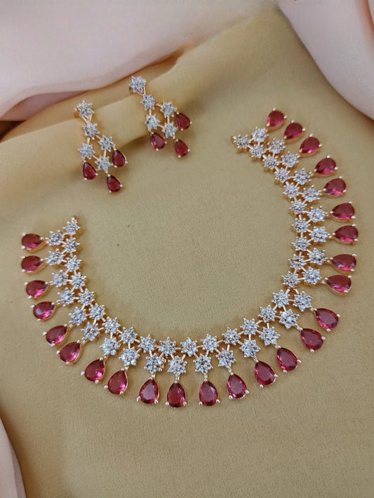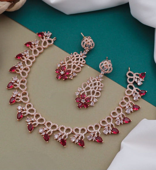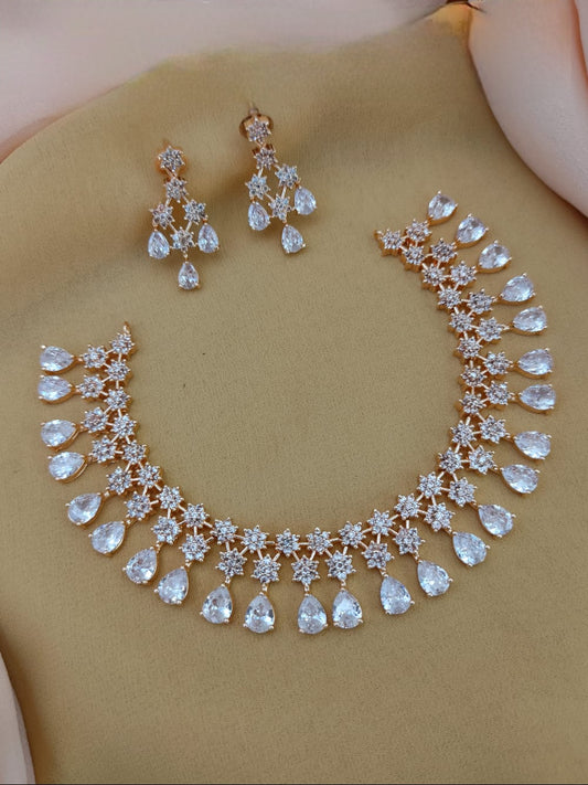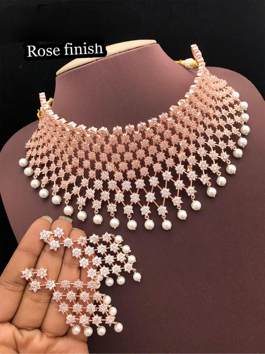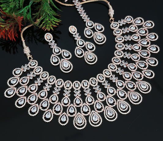 Trendy Rose Gold American Diamond Necklace Earring set | CZ Diamonnd Indian Jewelry | Wedding Jewelry | Elegant Necklace | Gift for her