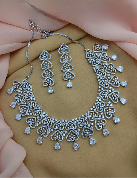 Rhodium Tone American Diamond Jewelry | CZ Crystal choker Necklace for Wedding | Indian Silver tone jewelry | Indian Bridal Necklace