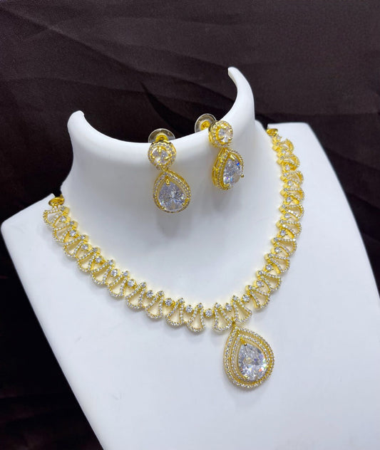 Tending Gold plated American Diamond necklace earring set | Indian Jewelry necklace | Bridal Necklace | bridesmaid gifts | Statement Necklace