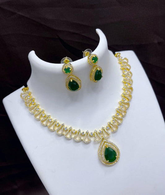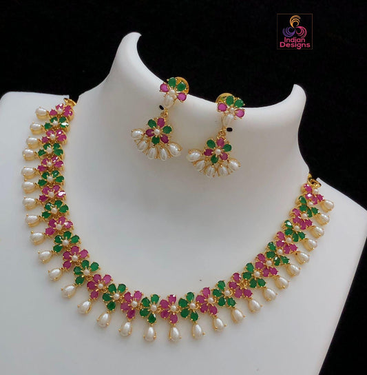 Gold Plated American Diamond Ruby Emerald Necklace | Indian Wedding Jewelry | CZ diamond necklace | Gift for her