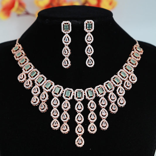 Rose Gold AD stone Mint green CZ Diamond & necklace Earring set | Sky Blue stone Necklace | Baby Pink AD stone Indian jewelry | Gift for Her