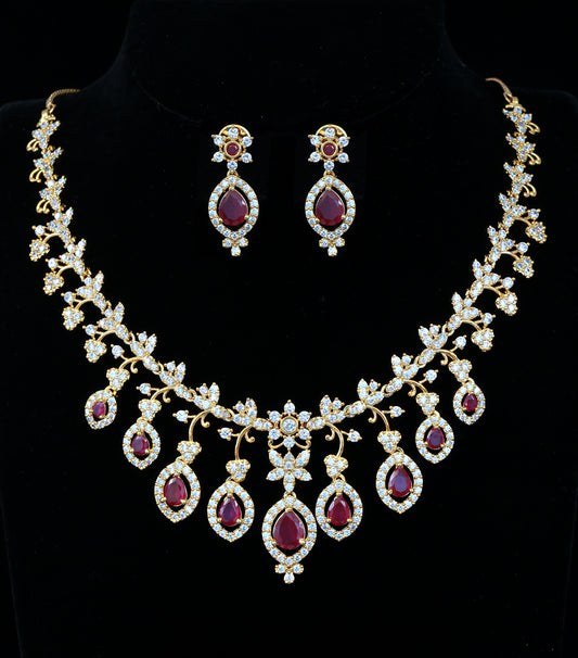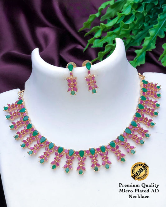 Cute Designer American Diamond Ruby Emerald Necklace earring set|One Gram gold Unique design CZ AD necklace Indian jewelry| Gift for her