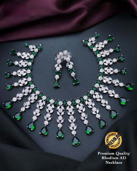Exclusively High quality American diamond Tear drop Pear shaped CZ color stone Necklace | Silver AD necklace Earring set