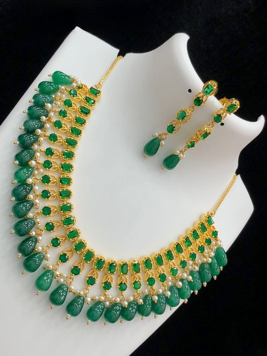 Emerald Ruby marquise cut CZ Diamond Gold plated simple choker necklace|American diamond cute and small necklace set |Unique Design jewelry