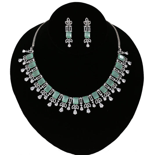 Rose Gold American Diamond necklace with Black Rhodium Polish | Rose Gold Cubic Zirconia Necklace with Mint green Stones |Indian jewelry set