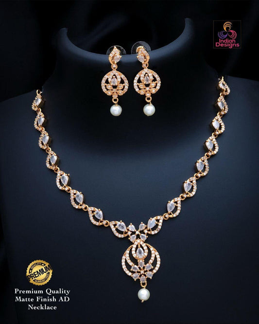 Elegant Gold Plated AD Necklace Set |CZ American Diamond choker Necklace |Indian Wedding Jewelry|Party Wear Necklace & Earrings|Gift for her