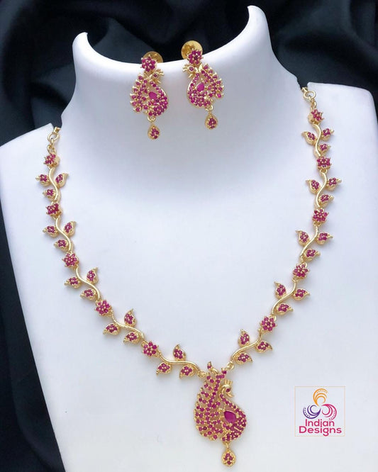 Gold plated american diamond dainty necklace and earrings| emerald ruby cz diamond choker| indian jewelry| statement necklace| gift for her