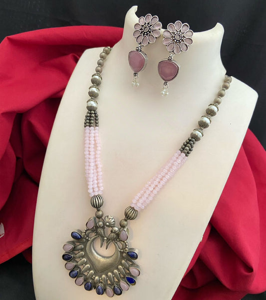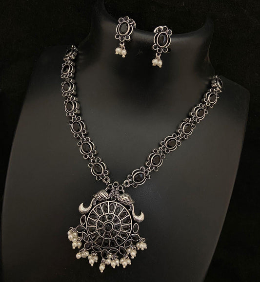 Premium Quality German Silver Oxidized Indian jewelry necklace| Indian Ethnic Jewelry| Oxidized Silver peacock Pendant Party Wear Jewelry