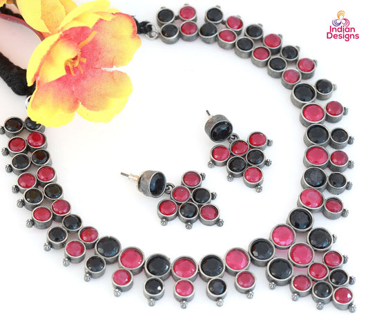 Antique silver choker at Low price | Indian Oxidized Silver Necklace with Color stones | German silver choker necklace