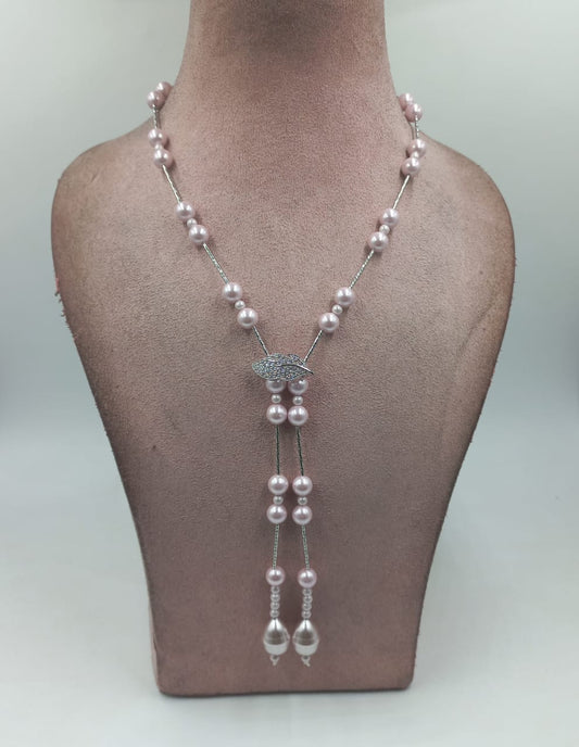Elegant Baroque Pearl Lariat Necklace, Multicolor Shell pearls Elegant Necklace |Silver tone Color Shell Pearl Lariat Jewelry|Gift for Women