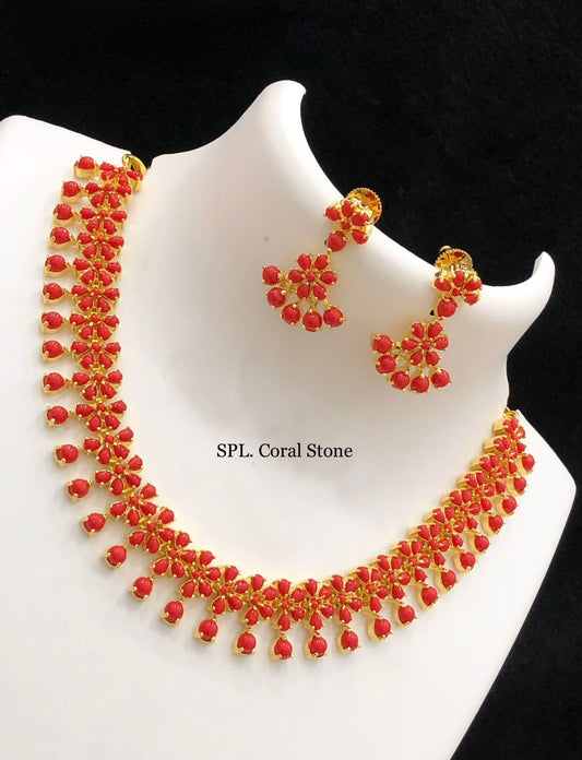 Gold Plated Exclusive Pearls and Red coral stones Floral motif Necklace | Indian Jewelry | Gift for her