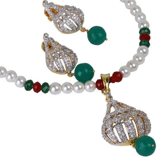 16” Trendy High Quality Beaded Necklace with Clear CZ Studded Pendant