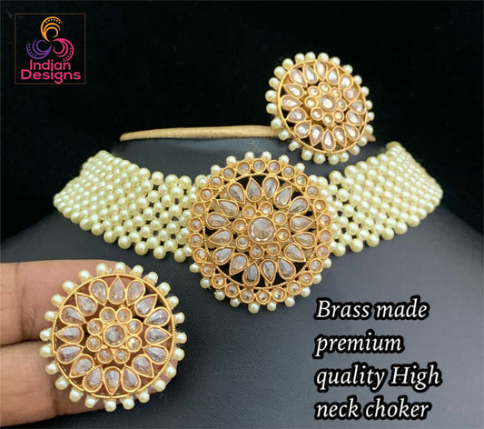 Pearl Choker Necklace for Women | Faux pearl necklace with Circle pendant | Wedding bridal pearl necklace and earrings set Floral Pendant