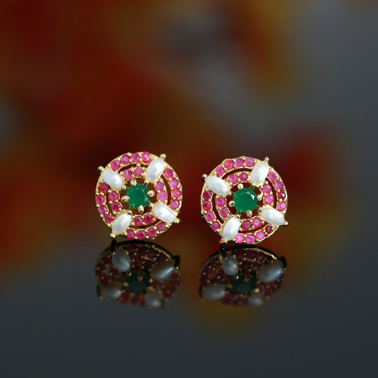 Genune Pearl and CZ Earrings | Real pearl American diamond Ruby and emerald Premium Stud Earrings | Wedding Earrings | Bridesmaid gift | Trendy Stud earrings