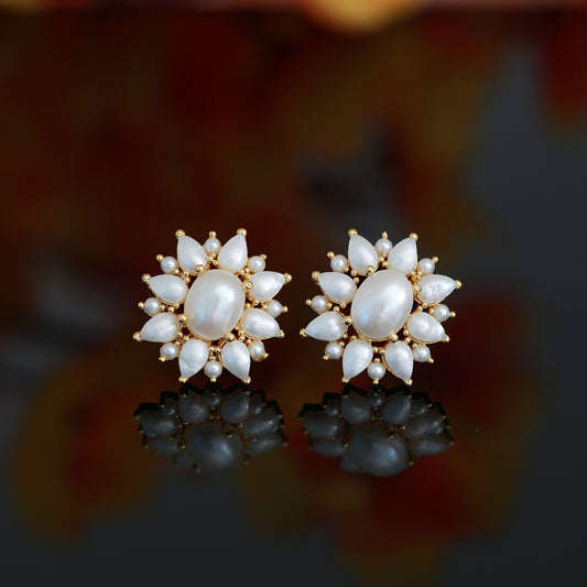 Real Pearl Stud Earrings Floral design