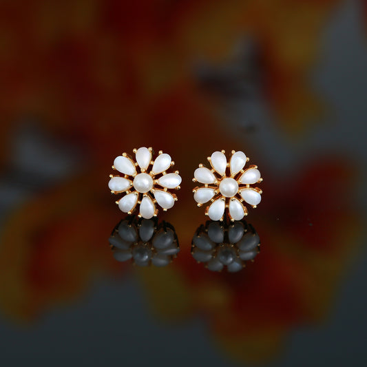 Gold plated floral pearl stud earrings, Bridal Pearl tops, boho jewelry, Perfect gift for her