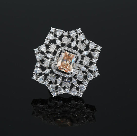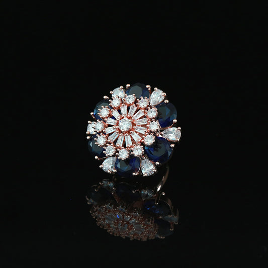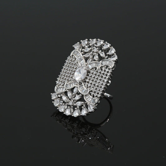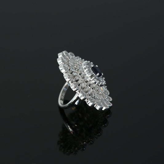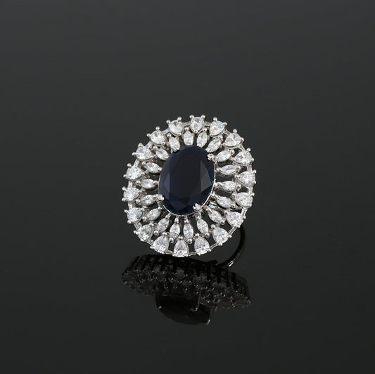Silver American Diamond Adjustable Finger Ring for women and girls| Sapphire Blue/Topaz stone cocktail rings| Cz Diamond Statement Ring