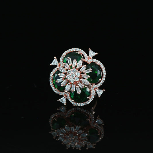 Rose gold rings for women | Four leaf clover ring rose gold with Diamond color stones | Semi precious stone engagement ring | Indian design