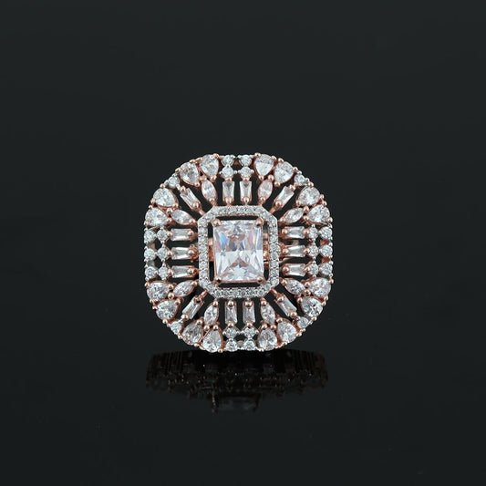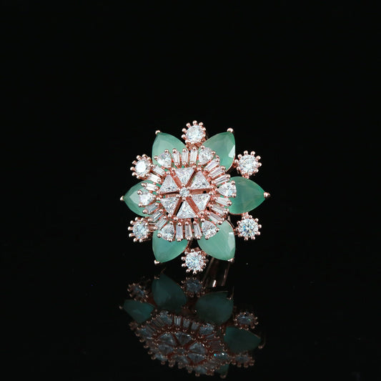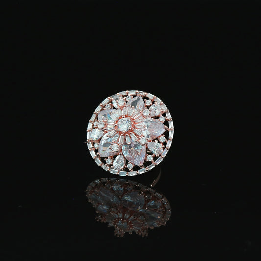 American diamond cocktail ring floral Design | Rose gold rings for women | Lotus flower engagement rings | Rose gold flower engagement rings