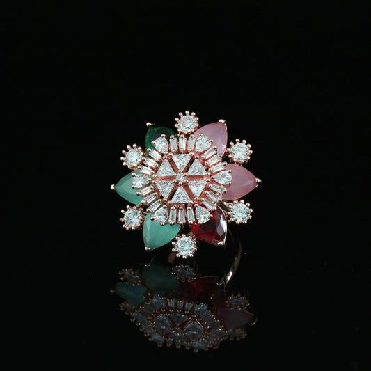 Cocktail rings Rose gold | finger rings for women | wedding rings | Colored stone engagement rings in Rose gold | indian rings with stones