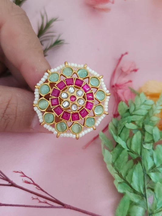 Adjustable multi-color stone ring| traditional indian cocktail ring| gold plated statement ring| kundan style gemstone ring| gift for her