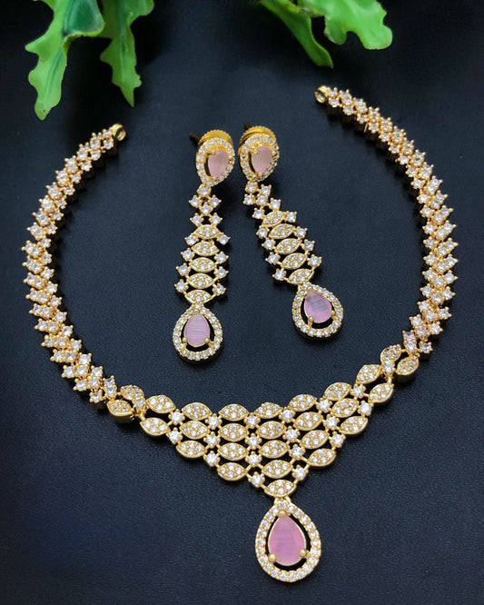 Gold Plated Cz American Diamond necklace Earrings|Indian Bollywood Jewelry |Trending south IndianParty necklace Earring set |Bridesmaid Gift