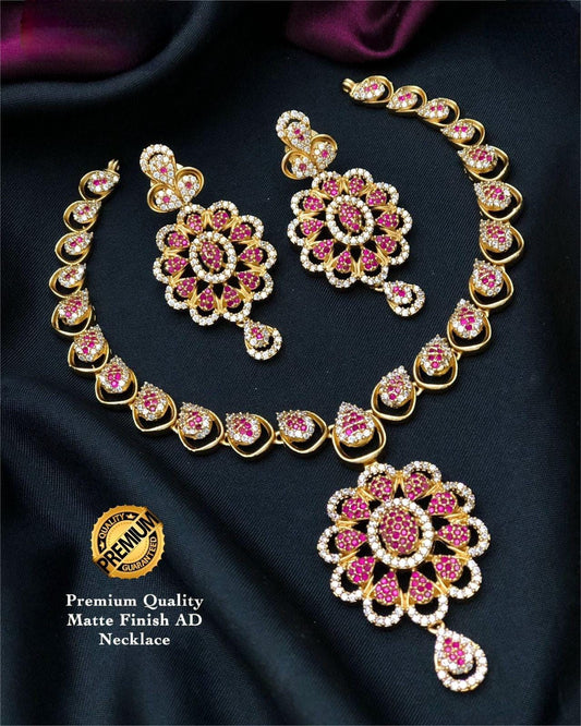 Matte Gold Ruby white American diamond South Indian Style necklace Earring set | Indian Designs Jewelry |Matte finish Indian Wedding Jewelry