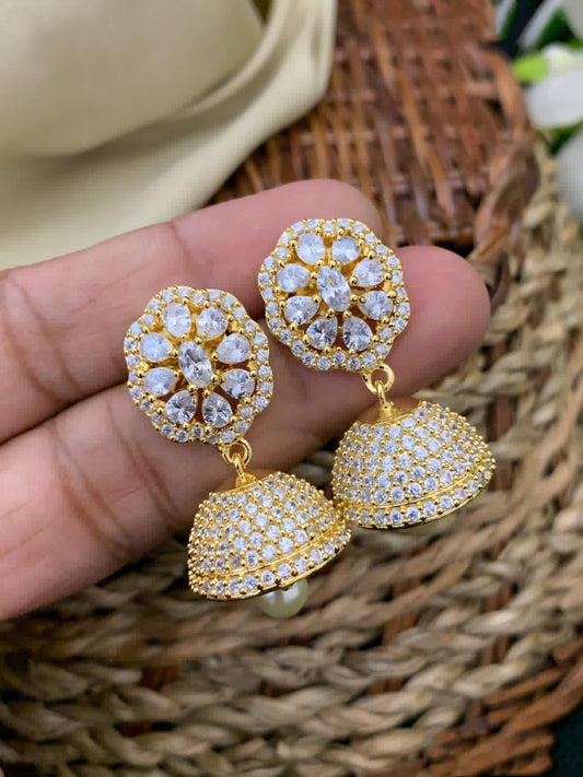 Latest Small AD Jhumka earrings gold Designs | American diamond Jhumka earrings | South Indian Jhumka designs in gold | Bollywood earrings