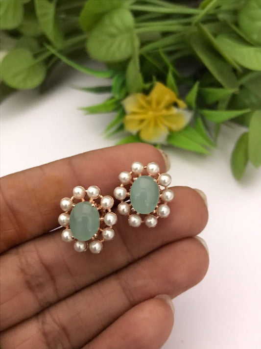 Multi-Color small CZ Stone Pearl Stud Earrings 22K Gold Plated | American diamond Floral Pearl stud Earrings tops |Trendy Stud earrings