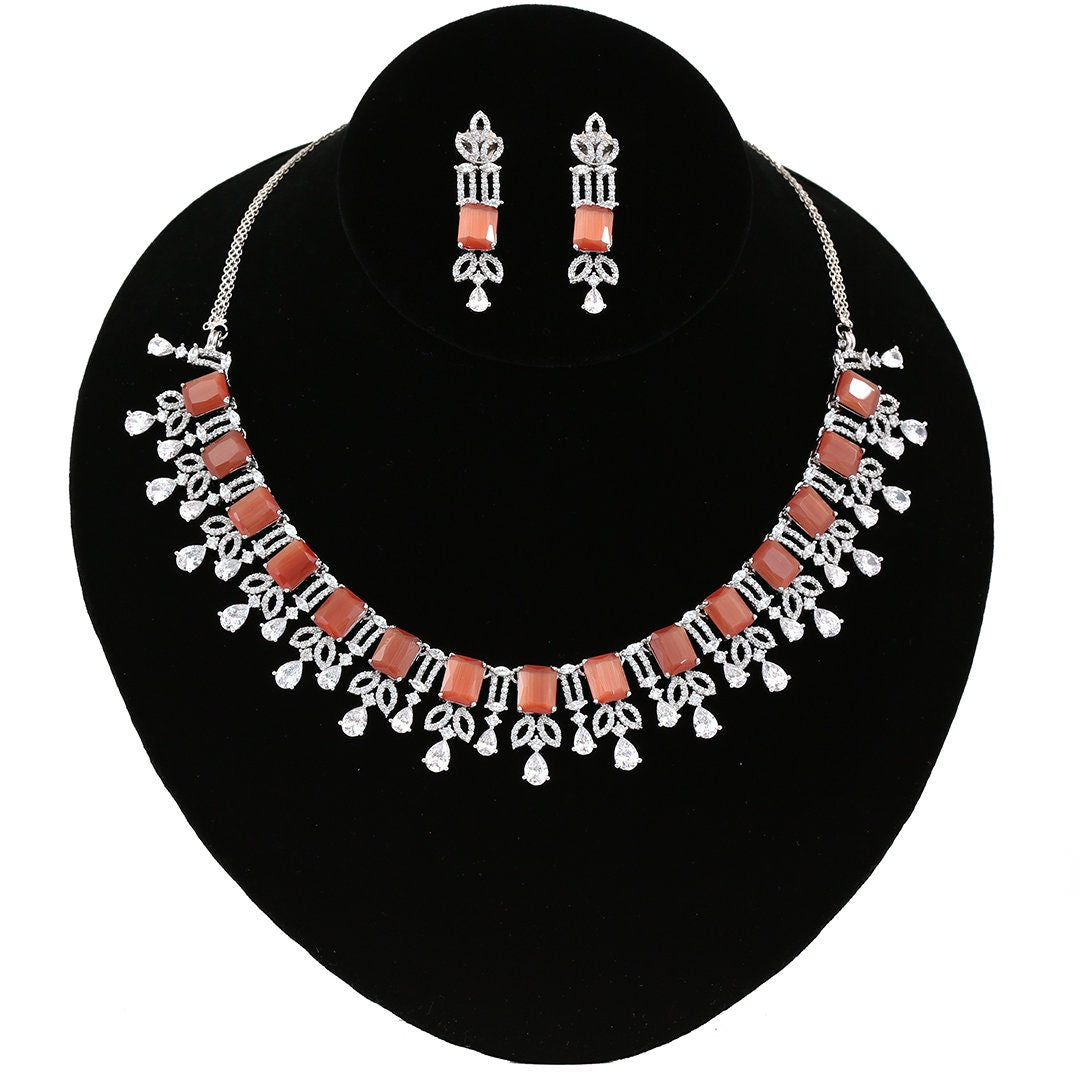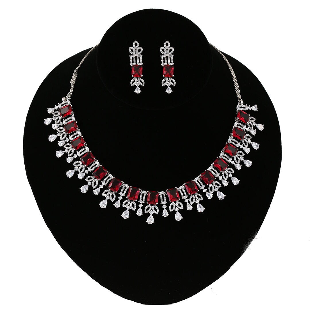 Emerald Cut AD American Diamonds Rhodium Plated Bridal Wedding Accessories|High Quality Fashion Jewelry